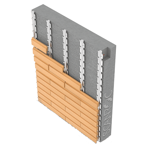 SCANROC is ventilated facade systems, which consists of a metal frame structure attached to the outside of the wall, clinker or concrete tiles attached to the frame and a heat-insulating layer or without