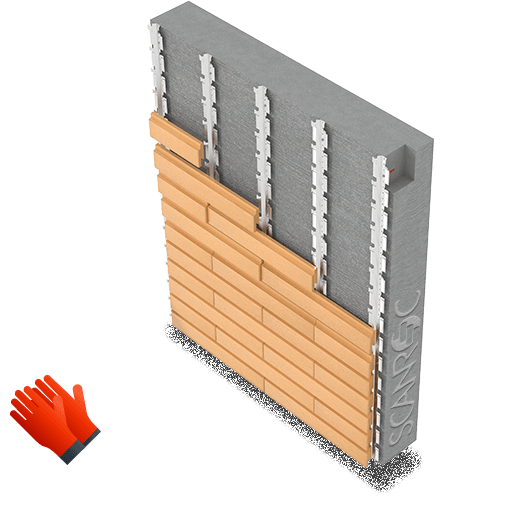 This is the fastest and easiest method of installation that do not is required special tools, mortar, adhesive, grout, wide scaffolding. SCANROC system has the integrity look of the tradition masonry method but rapid cladding saves the construction time, and also speed time to training labor and allowing the newcomers attraction. Due to the ease of installation, which reduces the number of operations and the complete absence of "wet" processes, SCANROC systems speed up the completion of facade works almost three times compared to, for example, facade plaster with insulation. Significant resource savings, eliminated expenses of extra foundation or the labor cost associated with brick masonry, cost of logistic volume, site storage, equipment and machines operating costs are reduced.